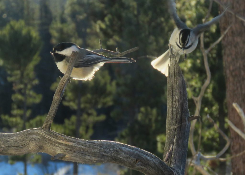 The birds were hungry before I left home – usually they are not interested in the feeder until it gets cold. There are the usual cast of characters – both black-capped and mountain chickadees,