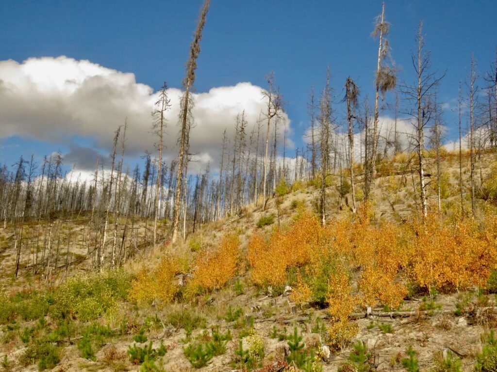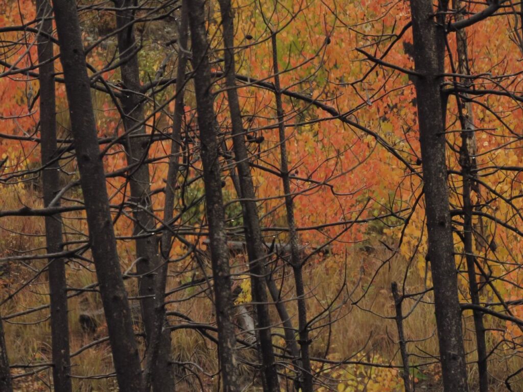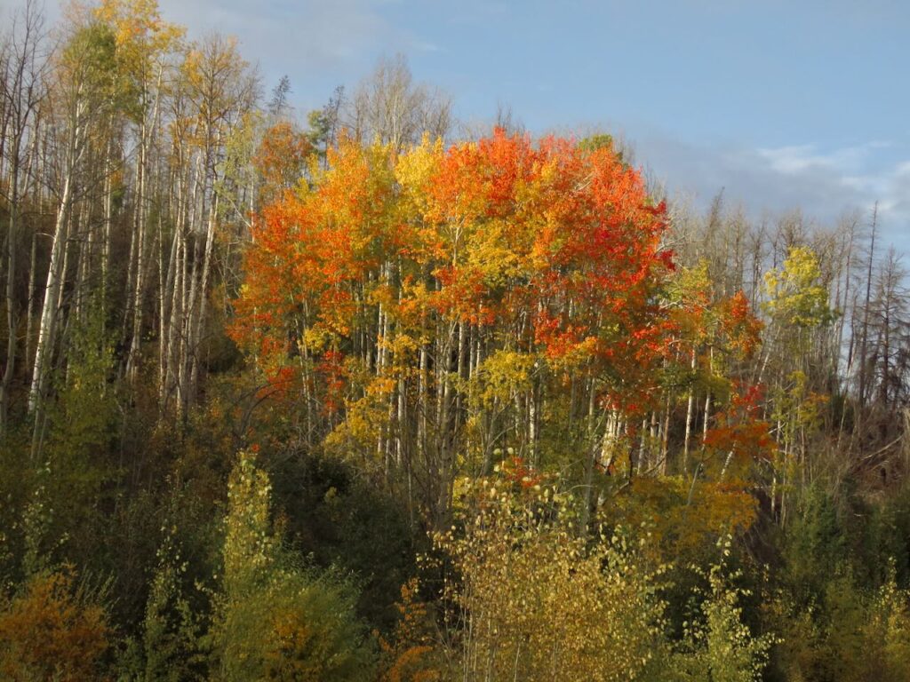 It was largely windy and rainy. Good for the land but the weather took the edge off the fall. This is along our road. Small aspens give the colour, but you can see the new pine trees starting to grow.