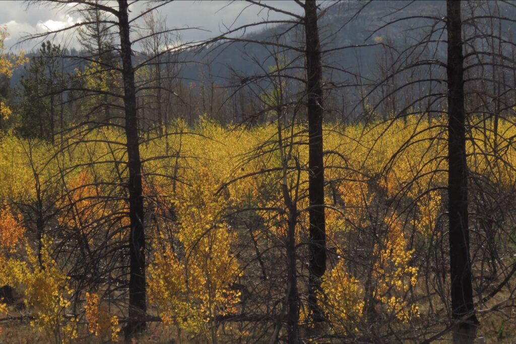 This clump of aspens is always red. It was partially damaged by the ’21 fire. I’ve noticed before that fire-injured trees produce red colour.