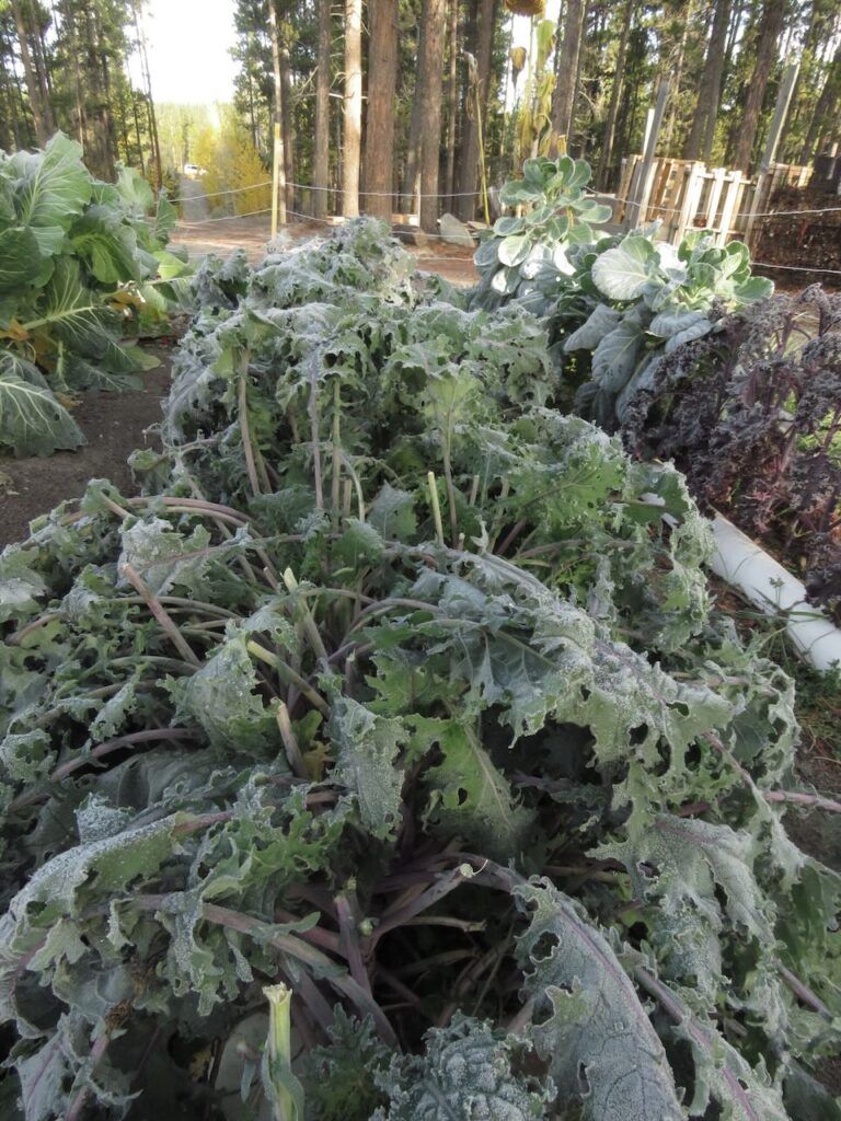Frost on the kale. They tolerate a lot of frost and perk up once the sun hits them. I found pickings to eat for quite a while.