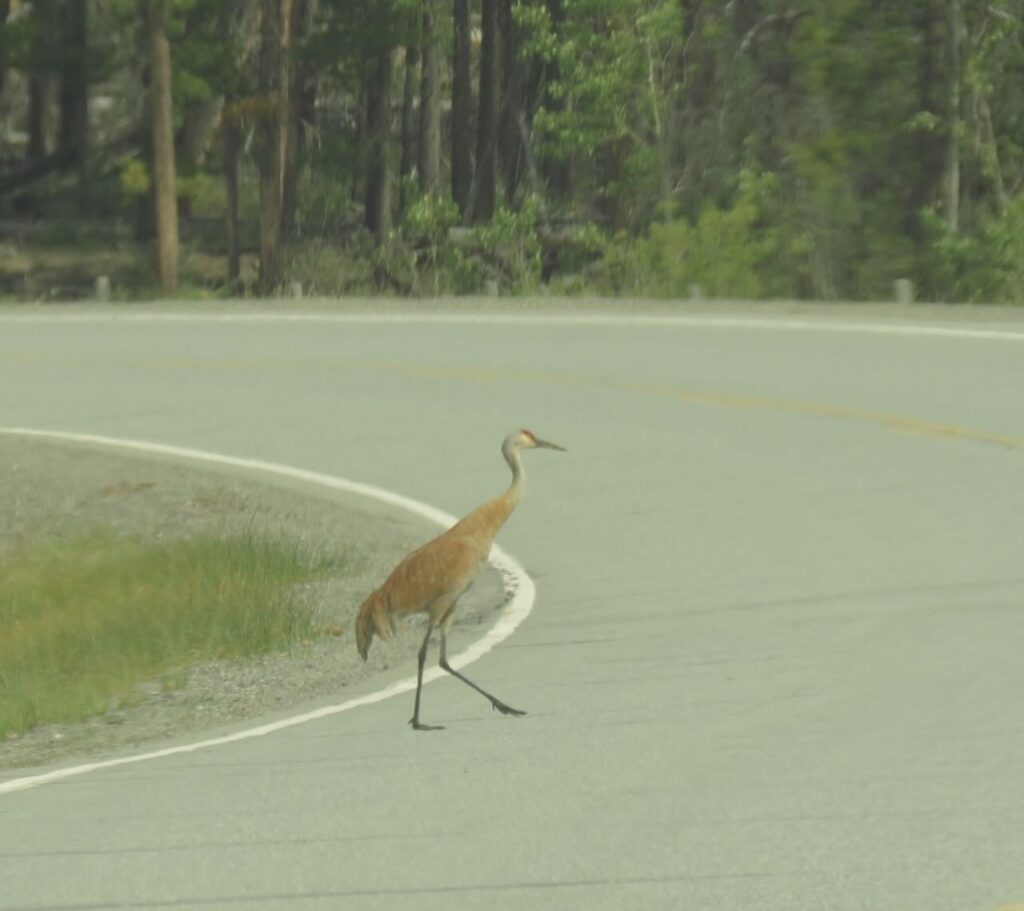 We always hear and see a few sandhill cranes. This one slowly walked across Highway 20.