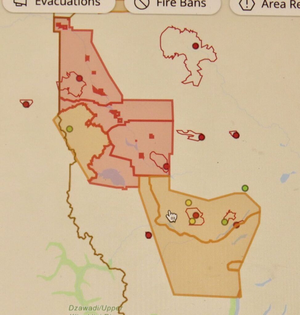 It was now the middle of August and usually the fire season winds down by this time; we all thought we had escaped it. But all of a sudden we got a slew of thunderstorms. My place was surrounded by fires. The cursor is sitting on my place.