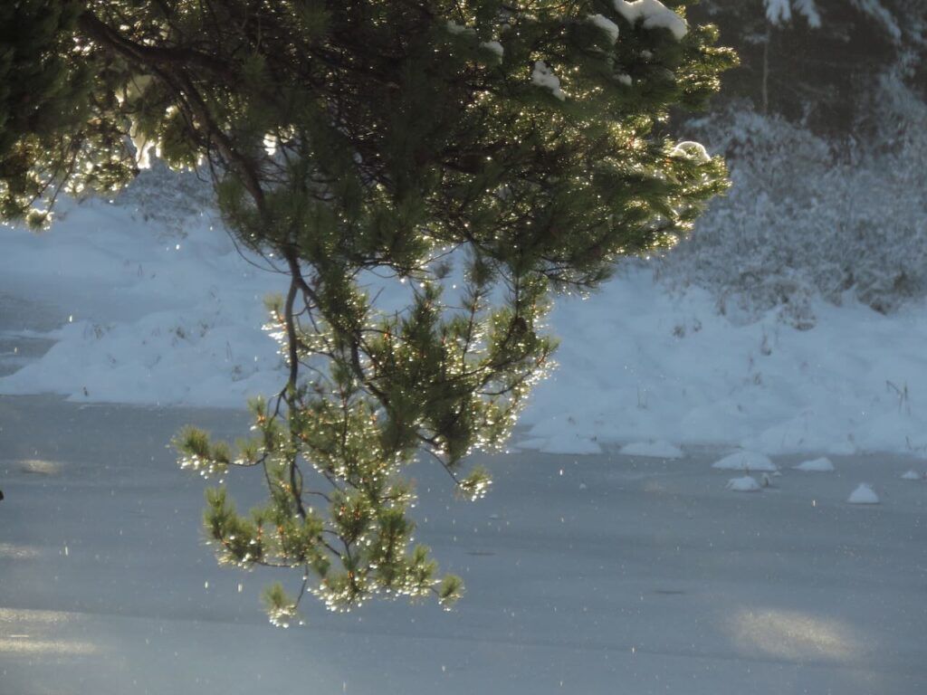 The persistent rain and ice rain became a real problem as the ground had already frozen. After one larger fall of about 12 cms, I decided to plow – big mistake. The subsequent rain turned the whole yard into an inch- thick solid skating rink. Even with ice grippers I could not walk on it. A couple of days later it snowed again. The snow did not bond to the ice but did provide a bit more traction. When I next need to plow I will keep the blade off the ground and leave a bit of snow. The following pictures were taken during rare bits of sunshine.