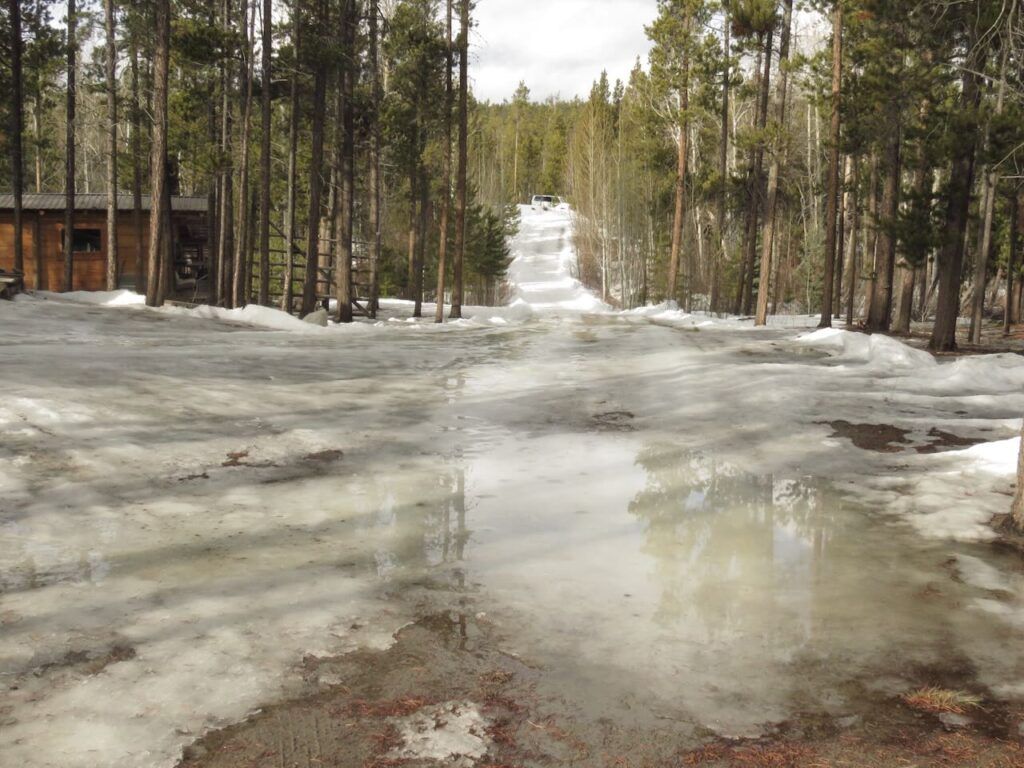 Occasional bits of snow, and lots more rain. Although it thawed every day and sometimes never froze at night, frozen ground prevented the snow from melting.