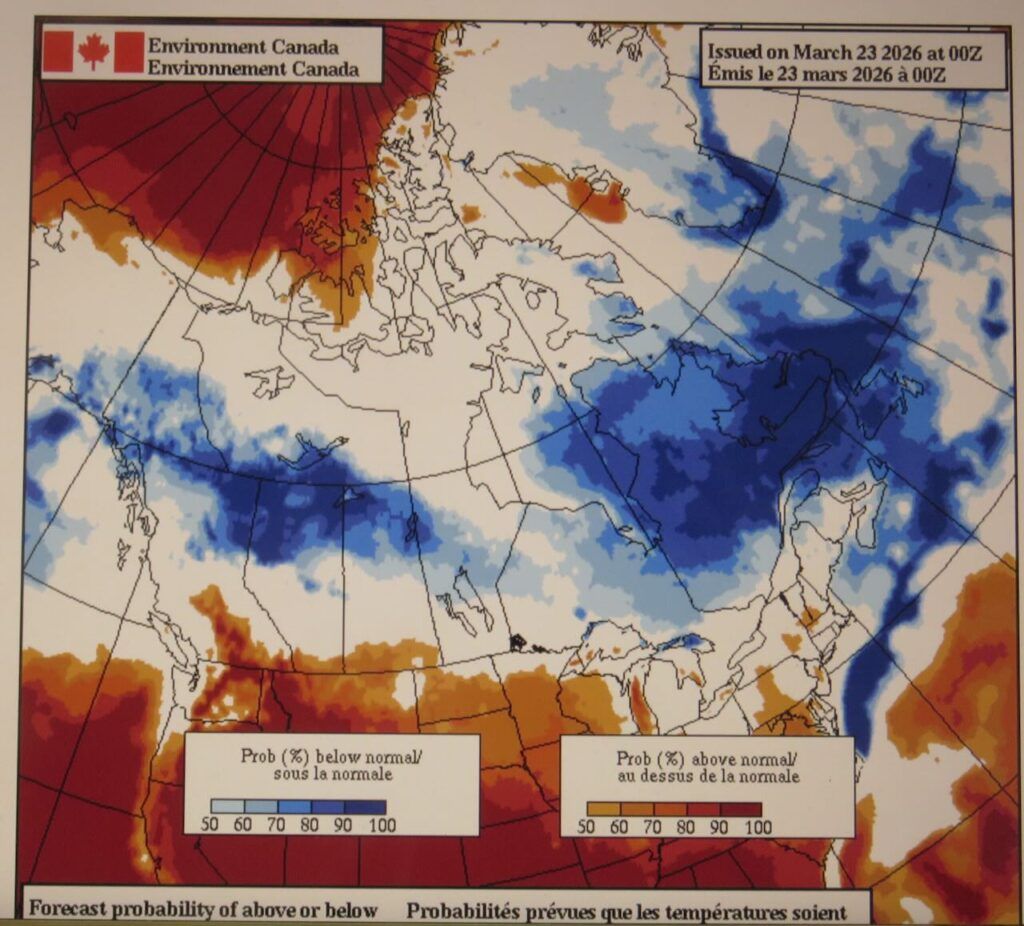Environment Canada’s monthly forecast illustrates this. A regular ice cream sandwich and we’re in the middle.