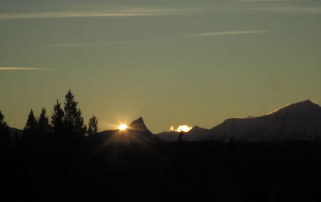 Clear mountains were rare, but by mid January, it was possible to see how the sunset point was moving. On the shortest day it sets to the left of the trees.